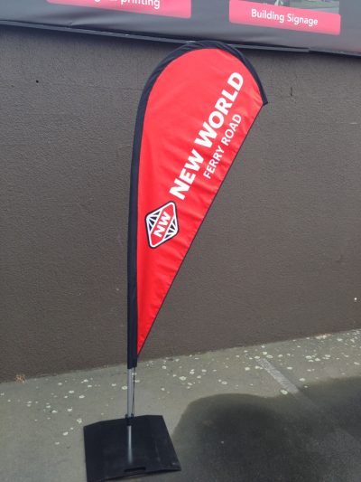 admin2019-11-10T13:18:06+13:00Teardrop Flags - Available - small, medium, large, single sided or double sided (as viewed), comes with various bases, ground spike, cross foot, flat plate and other options. Please enquire now.