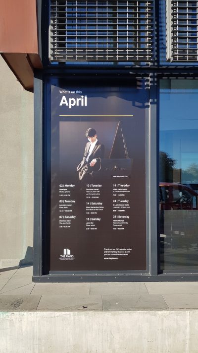 admin2019-11-10T14:07:57+13:00Promotional vinyl Digitally Printed and applied to the outside of the window. No Laminate to keep cost down, easily removed because of removable adhesive vinyl. Great result, cost effective.