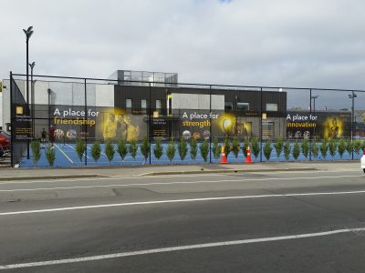 admin2019-11-10T14:10:12+13:00Printed PVC hemmed with roped edge and reinforced with eyelets, installed onto concrete wall. Great impact.