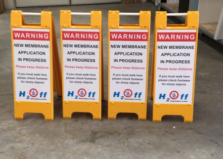 Our standard sign is a durable weighted rubber moulded base with an ACM panel for indoor or outdoor use. We can do alternatives but find this option the best as you don’t have to fill with sand or water.